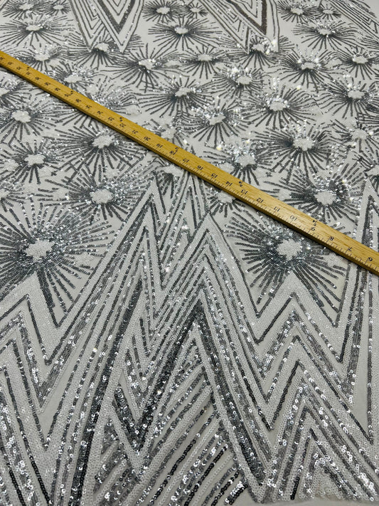 New Luxury sequins Geometric design embroidered on stretch mesh 2-way stretch 55/57” Sold by the YD. Ships Worldwide from Los Angeles CA