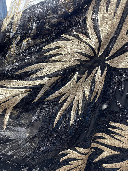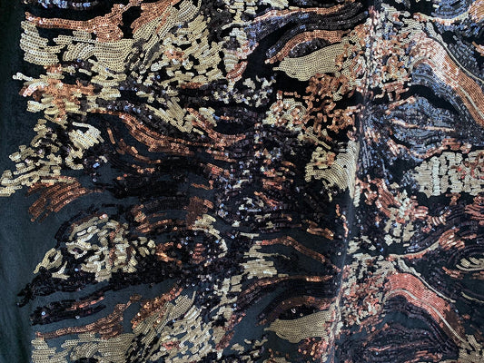 New sequins black/bronze/beige abstract design on stretch base 2way 58/60" Sold by the YD. Ships worldwide from Los Angeles California USA.