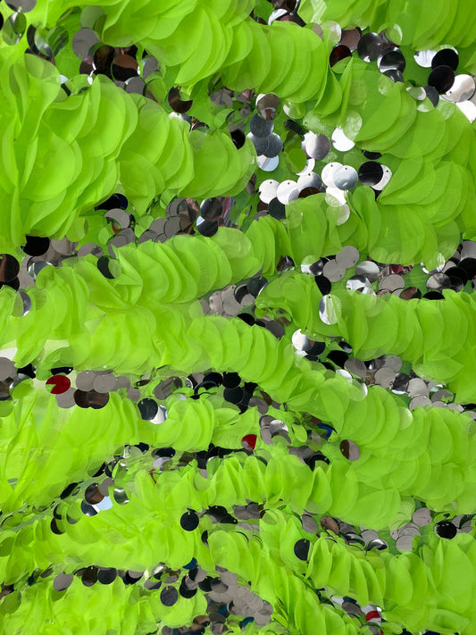 New modern puffy disco chiffon design with paillette silver sequins on stretch mesh 2-way 55/57” Sold by the YD. Ships Worldwide from L.A CA
