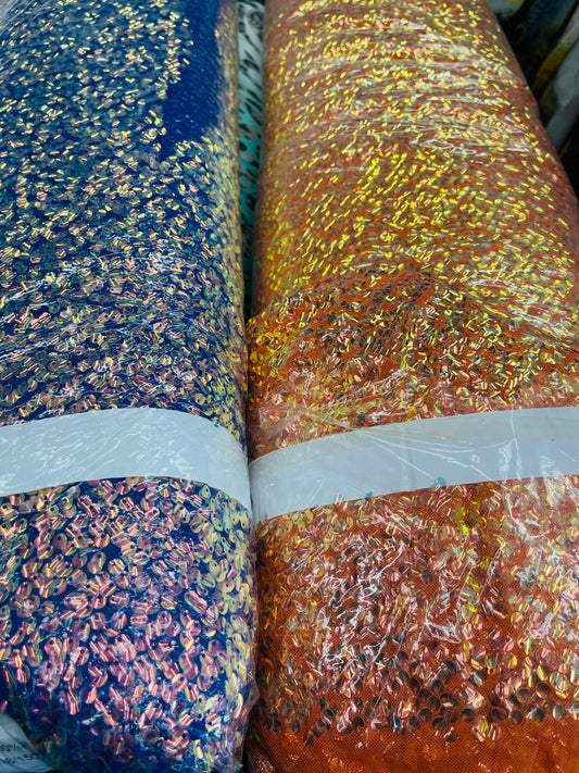 New Luxury iridescent sequins embroidered on 4-way stretch mesh 55/57” Sold by the YD. Ships Worldwide from Los Angeles California USA.