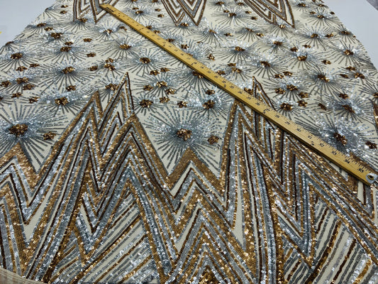 New Luxury sequins Geometric design embroidered on stretch mesh 2-way stretch 55/57” Sold by the YD. Ships Worldwide from Los Angeles Califo