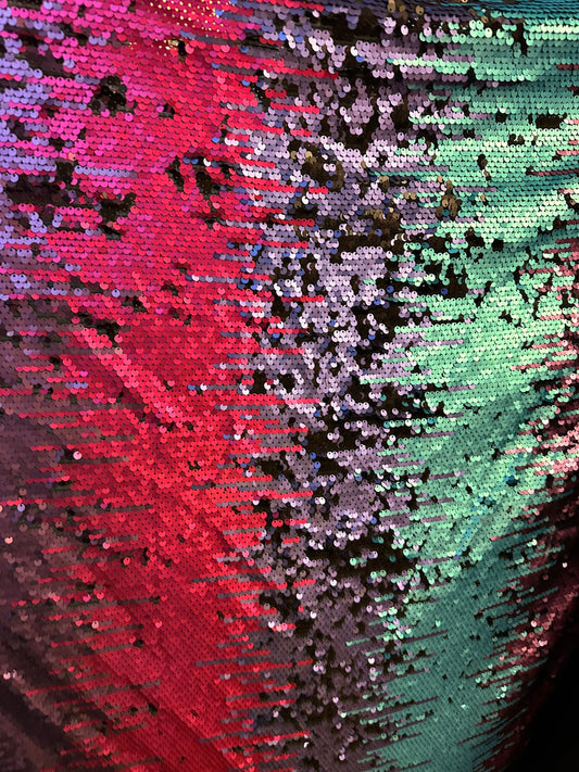 New Ombré design multicolor sequins embroidered on spandex base 2-way stretch 58/60” Sold by the YD.