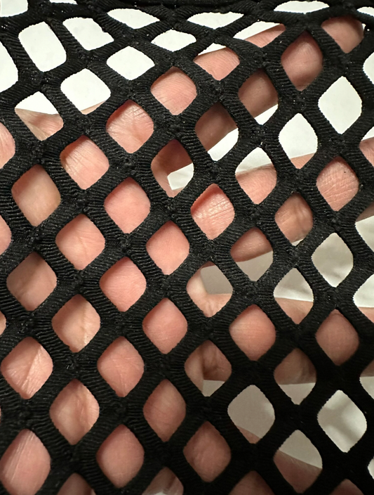 Diamond black nylon mesh high quality 4-way stretch 58/60” Sold by the YD. Ships worldwide from Los Angeles California USA