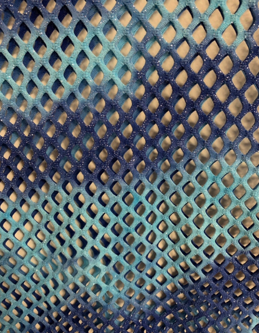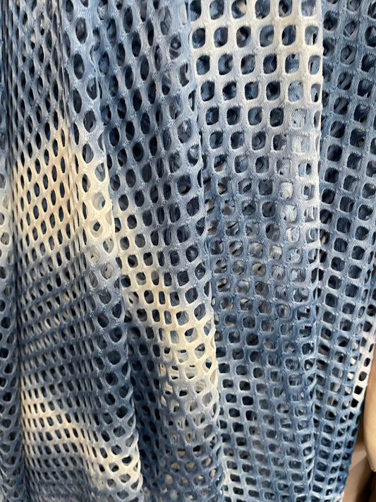 Diamond fish net tie dye mesh blue/cream 4-way stretch 58/60” Sold by the YD. Ships Worldwide from Los Angeles California USA.