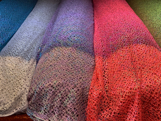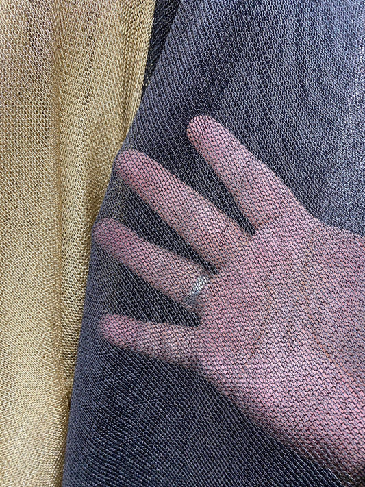 New fishnet with metallic glitter all over 4-way Stretch 58/60” Sold by the YD. Ships worldwide from Los Angeles California USA.