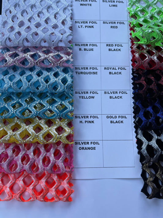 Metallic Diamond fishnet 2-way stretch spandex mesh with foil All over 58/60” Sold by the YD. Ships Worldwide from Los Angeles California US