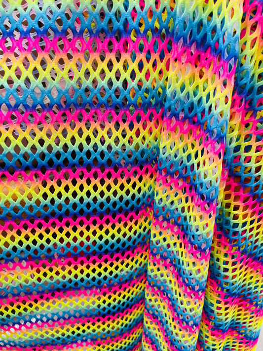 New Rainbow Diamond fishnet 4-way stretch 58/60” Sold by the YD. Ships Worldwide from Los Angeles California USA.