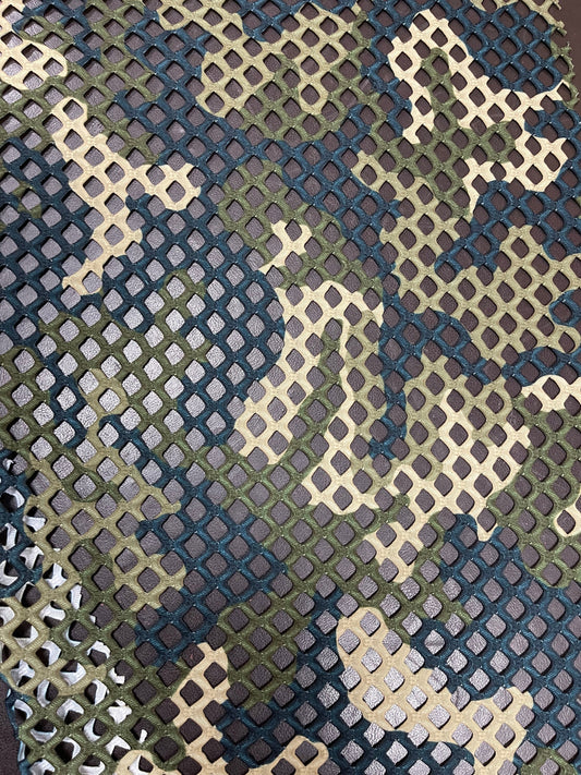 New Camouflage design print on diamond fishnet 4-way stretch 58/60” Sold by the YD. Ships Worldwide from Los Angeles California USA.