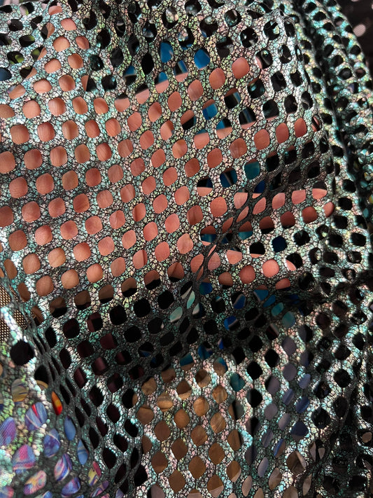 Metallic Diamond fishnet 4-way stretch spandex mesh with foil All over 58/60” Sold by the YD. Ships Worldwide from Los Angeles California US