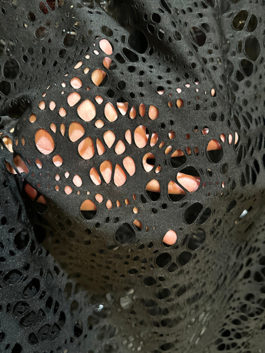 New Spiderweb multi design black mesh 4-way stretch 58/60” Sold by the YD. Ships Worldwide from Los Angeles California USA.