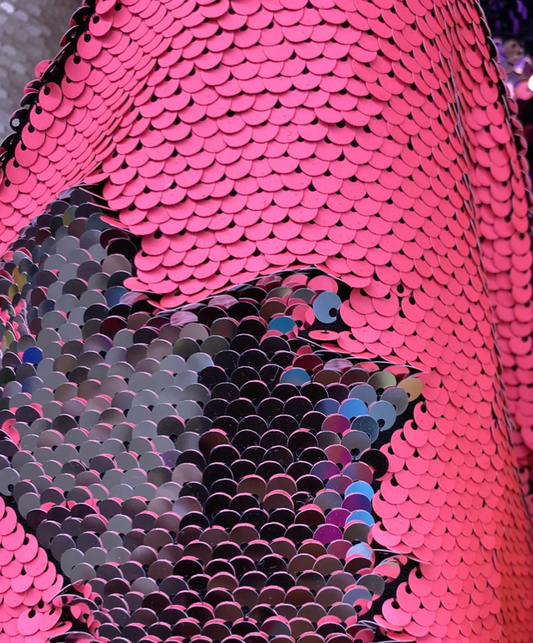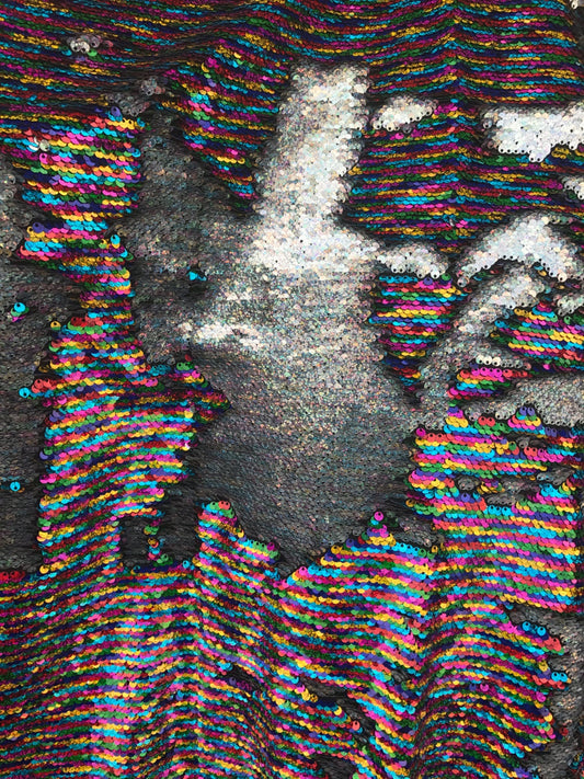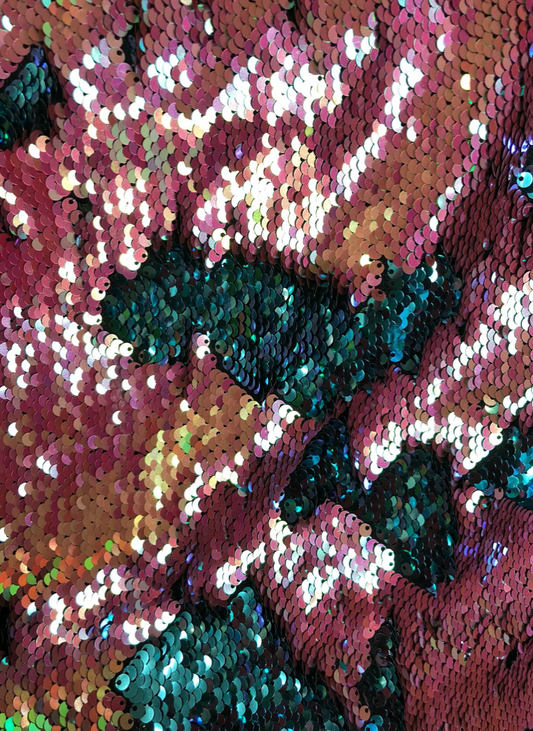 Flip up mermaid sequins 5mm two tone reversible sequins on spandex base 58/60"