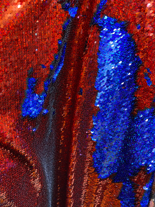 NEW flip up sequins Hologram royal/red 2 tone reversible sequins 58/60"