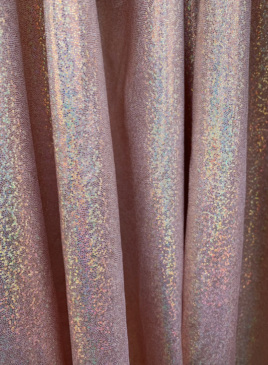 Blush/silver foggy foil hologram metallic nylon spandex 4-way stretch 58/60”