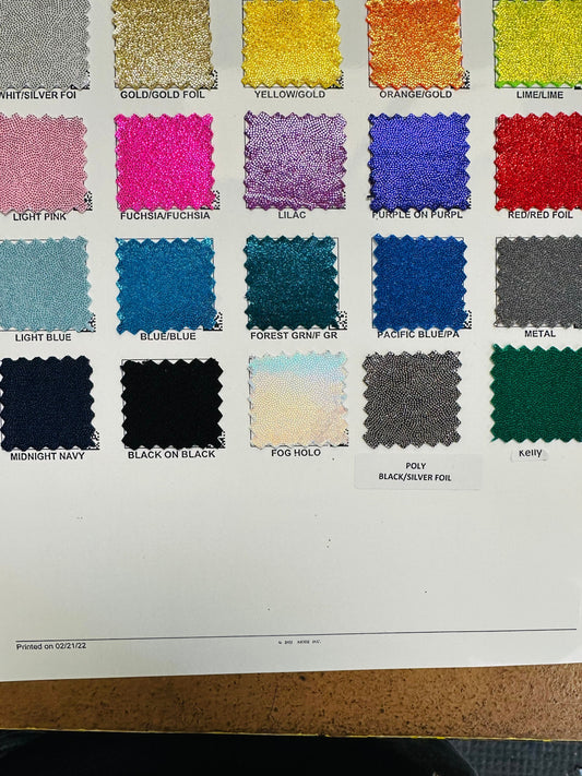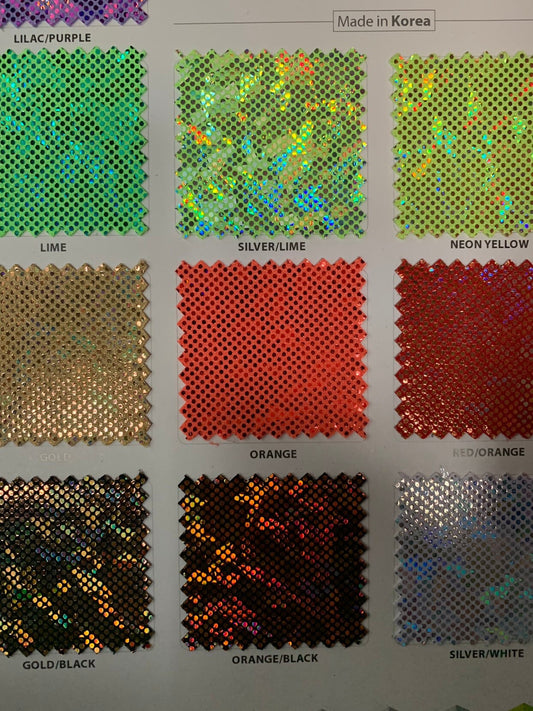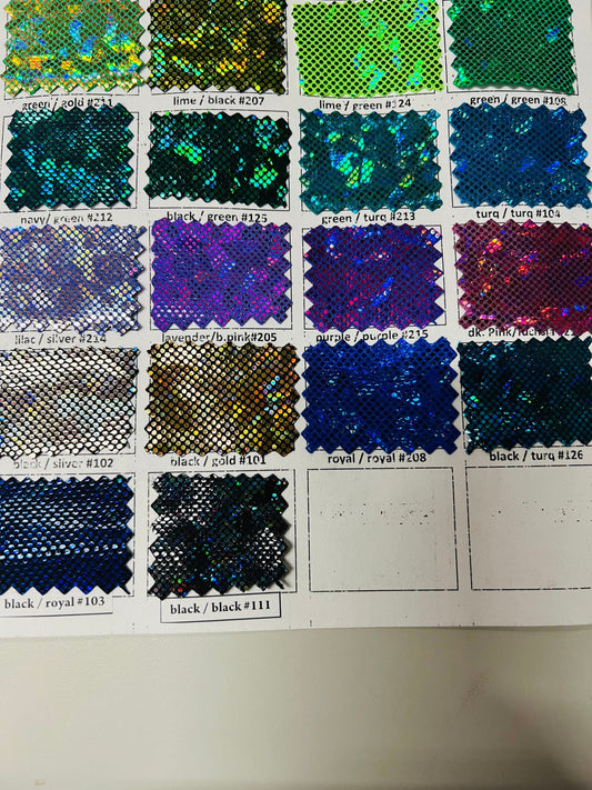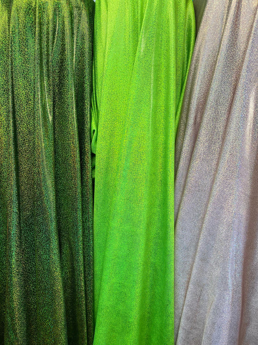 Nylon spandex holographic sparkling foggy foil 4way stretch 58/60" Sold by the YD. Ships worldwide from Los Angeles California USA.
