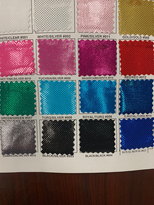 Nylon spandex with dot metallic foil 4-way stretch 58/60" Sold by the YD. Ships worldwide from Los Angeles California USA.