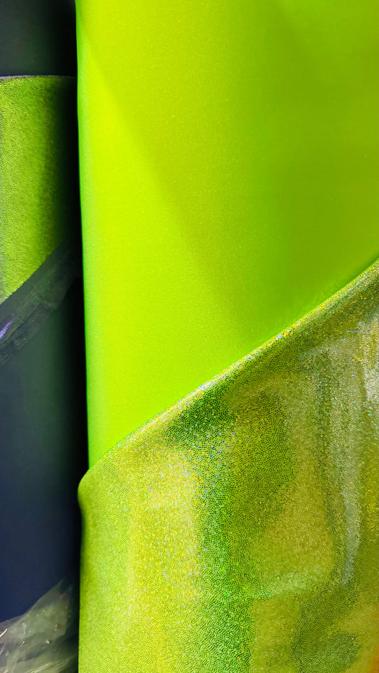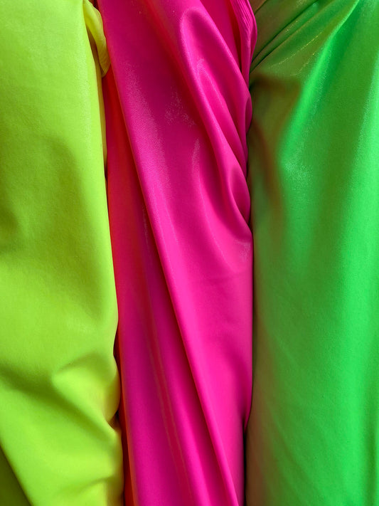 New foggy with clear foil neon colors metallic nylon spandex 4-way stretch 58/60” Sold by the YD. Ships worldwide from Los Angeles CA USA
