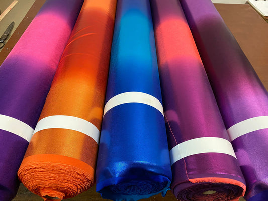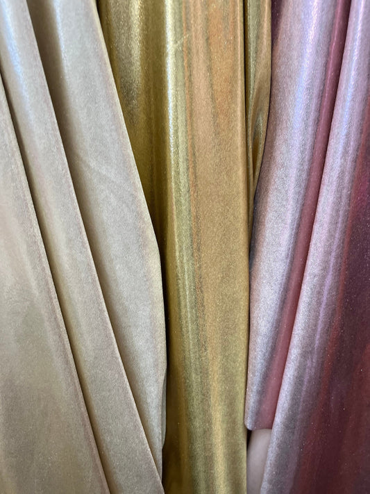 New ombré foggy foil 2-tone metallic nylon spandex 4-way stretch 58/60” Sold by the YD. Ships worldwide from Los Angeles California USA.