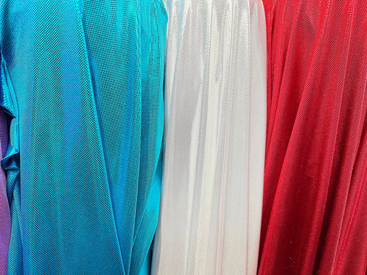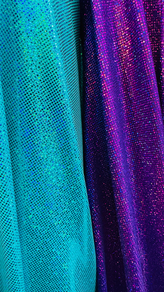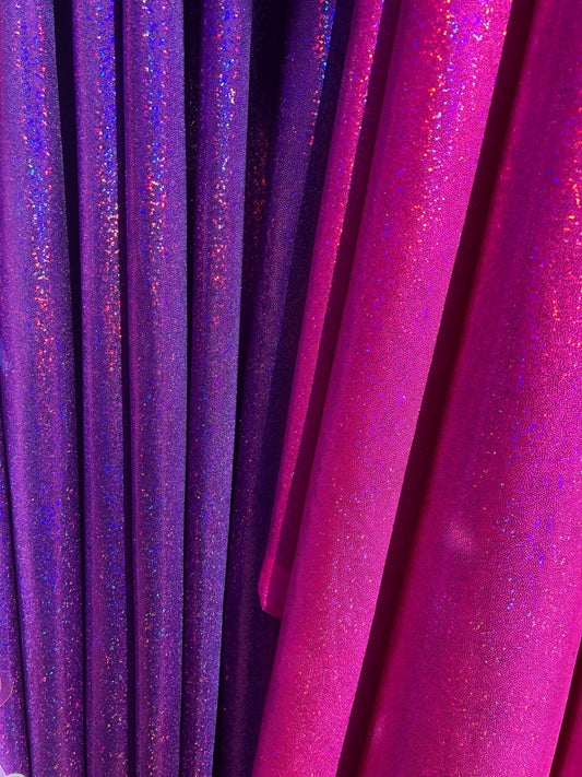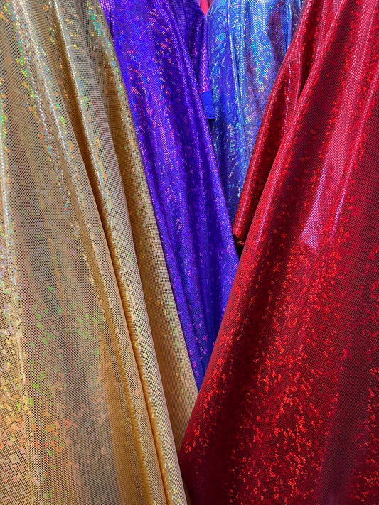 Super sparkling hologram metallic foggy foil nylon spandex 4-way stretch 58/60” Sold by the YD. Ships worldwide from Los Angeles California