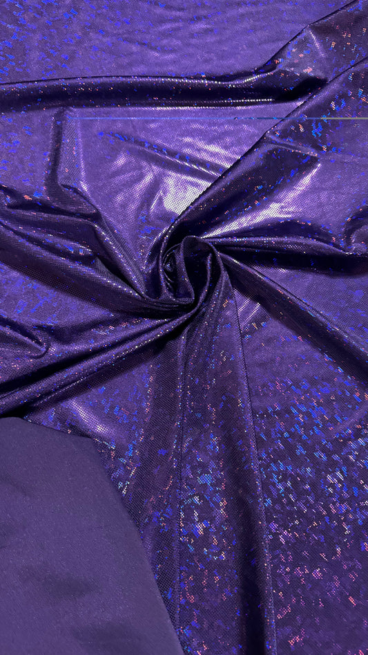 Purple Shattered Glass design hologram metallic nylon spandex 4-way stretch 58/50” High quality fabrics by AlexLAFabrics