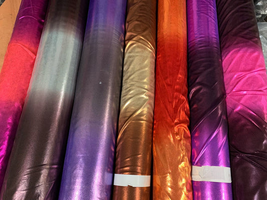 Ombré metallic 2tone All Over Foil Nylon Spandex 4way Stretch 58/60" Sold By The YD. Ships Worldwide From Los Angeles California USA.