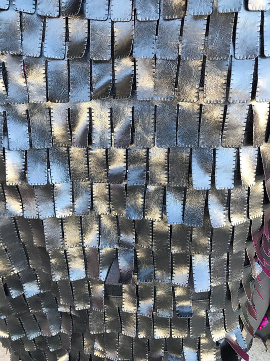 Chainette fringe sequins on mesh base 2 way stretch 55/57" Sold by the YD. Ships worldwide from Los Angeles California USA.
