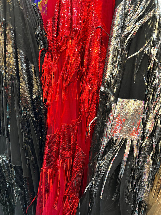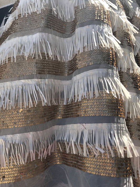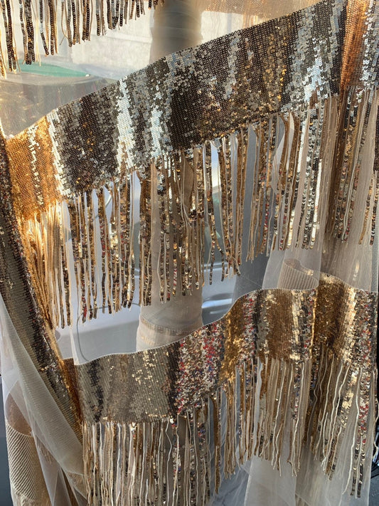 New sequins fringe design on stretch mesh 2way stretch 58/60" Sold by the YD. ships worldwide from Los Angeles California USA.