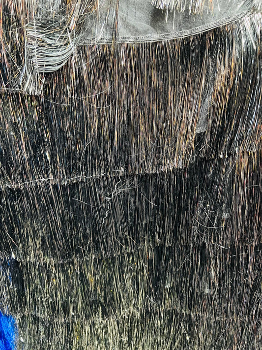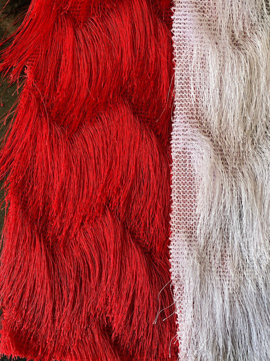 New luxury fringe design mesh base long hair 2-way stretch 55/57” Sold by the YD. Ships worldwide from Los Angeles California USA.