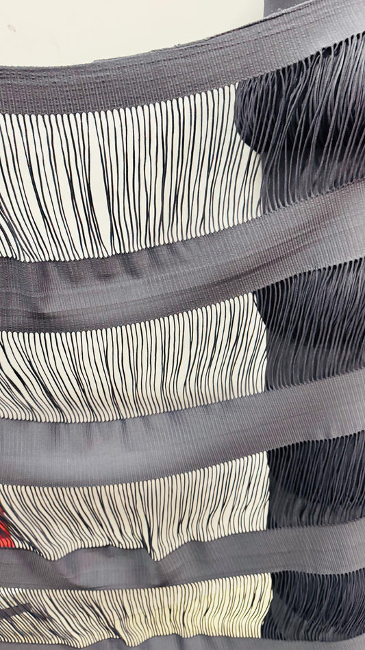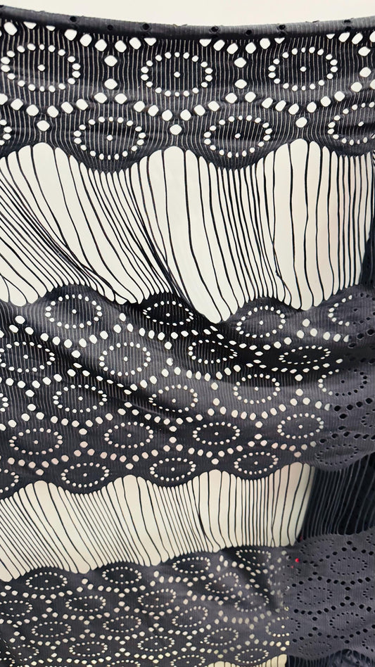 Fringe design Luxury nylon spandex 4-way stretch 55/57” Sold by the YD. Ships worldwide from Los Angeles California USA.