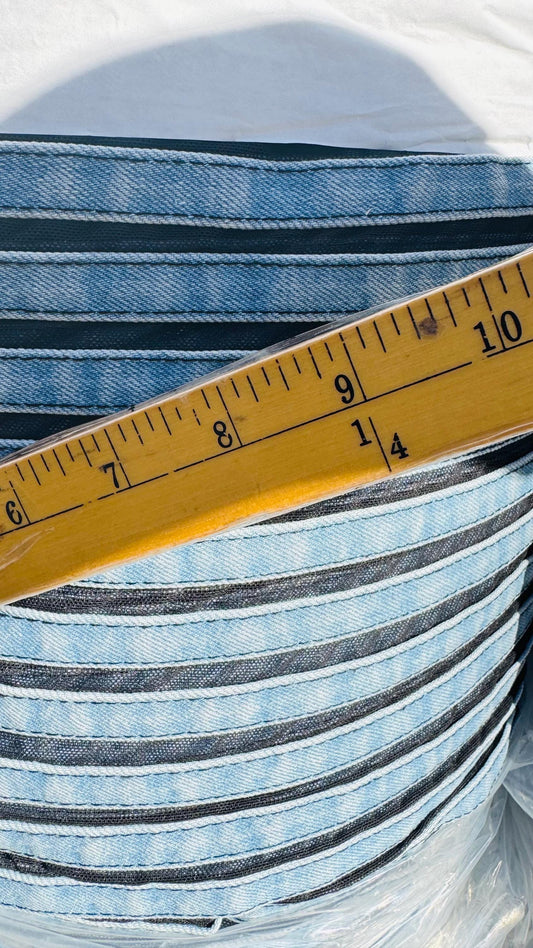Deluxe Stripes design leather black stripes and denim stripes on spandex power mesh nylon spandex 4-way stretch 44/45” High quality fabrics
