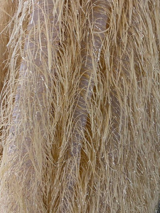 New luxury fringe design mesh base metallic long hair 2-way stretch 55/57” Sold by the YD. Ships worldwide from Los Angeles California USA.