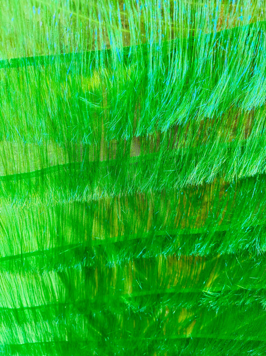 Luxury long hair metallic mesh Neon green 4-way stretch 58/60” High quality fabrics by AlexLAFabrics