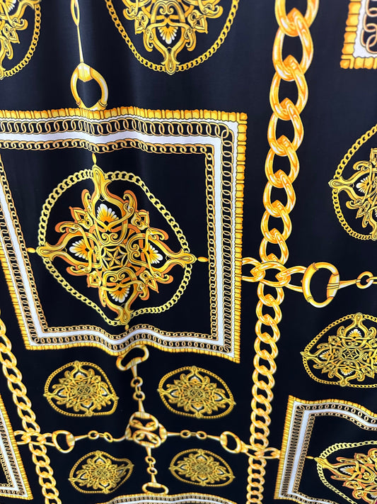 New modern chain design print on poly spandex 4-way stretch medium weight 58/60”