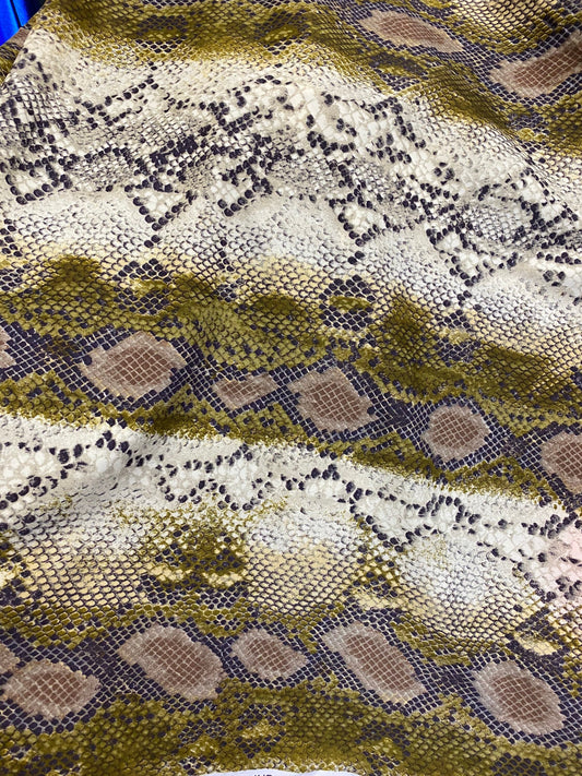 New exotic snake design print on poly spandex 4-way stretch medium weight 58/60” Sold by the YD. Ships worldwide from Los Angeles California