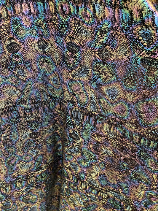 New iridescent snake design black/pink metallic spandex 4 way stretch 58/60” Sold by the YD. Ships worldwide from Los Angeles California USA