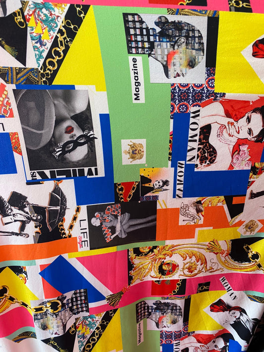 New Luxury modern magazine fashion design print on poly spandex 4-way stretch medium weight 58/60” Sold by the YD. Ships worldwide