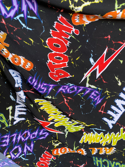 New Graffiti Art design print on poly spandex 4-way stretch 58/60” Sold by the YD. Ships Worldwide from Los Angeles California USA.