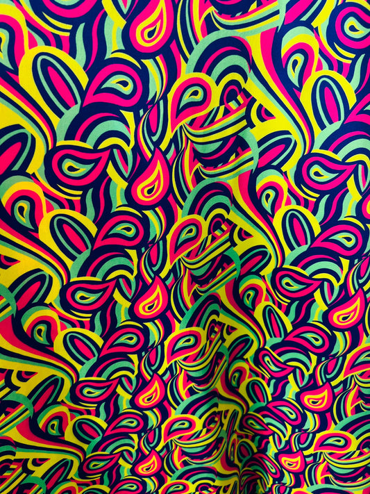 New paisley design multicolor print on poly spandex light weight 4-way stretch 58/60” Sold by the YD. Ships Worldwide from Los Angeles cali