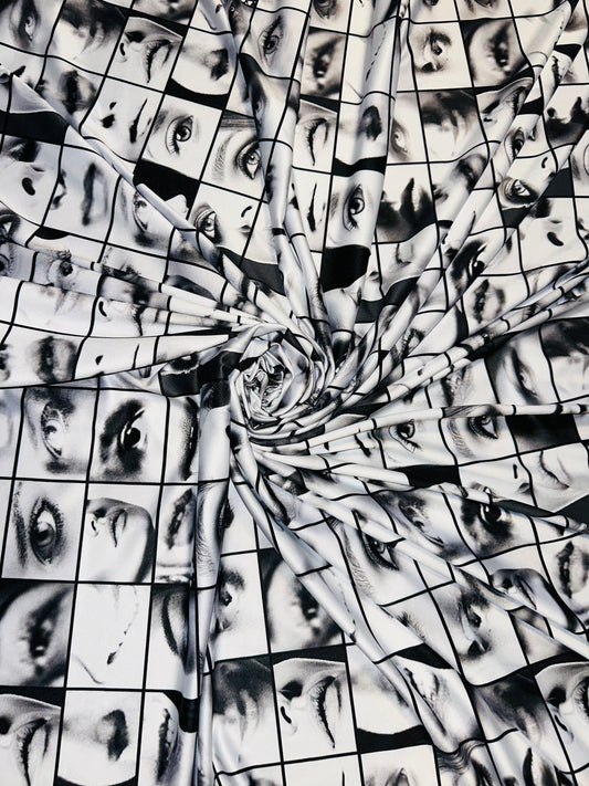 New eyes & lips design modern fashion design print on great quality of poly spandex 4-way stretch 58/60” Sold by the YD.