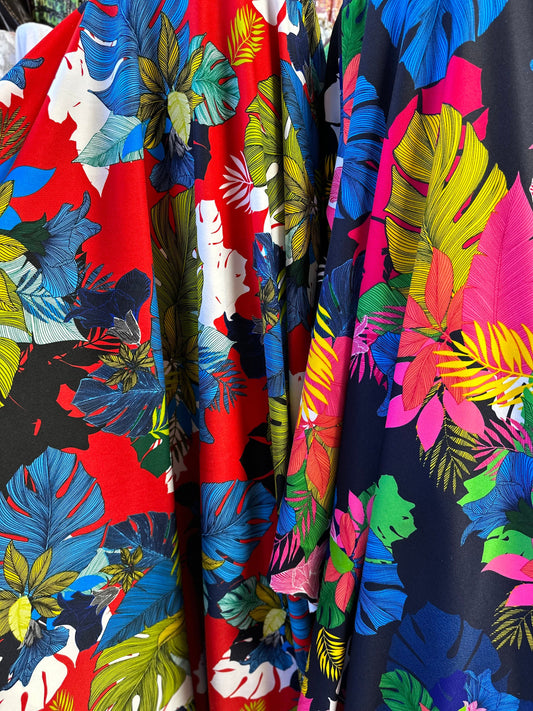 New Hawaiian design print on great quality of spandex scuba 4-way stretch 58/60”