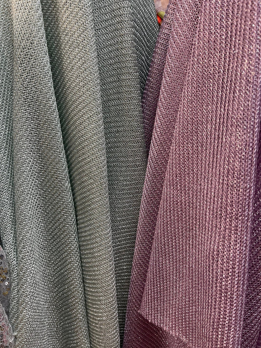 New metallic 3D sweater knit 2-way stretch 58/60” Sold by the YD. Ships Worldwide from Los Angeles California USA.