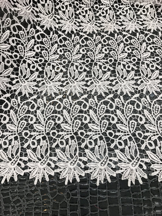 French white guipuir floral design 50/52" 100% poly sold by the YD. Ships worldwide from Los Angeles California United States.