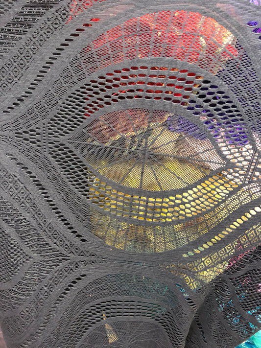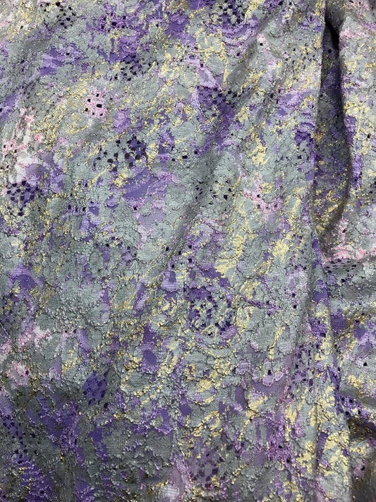 Tie dye Metallic stretch lace flower design 4way 54/55" sold by the YD. Ships worldwide from Los Angeles California USA