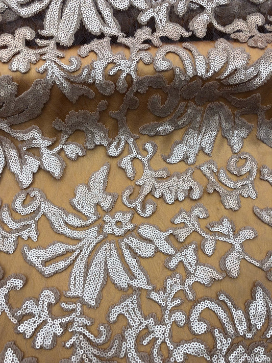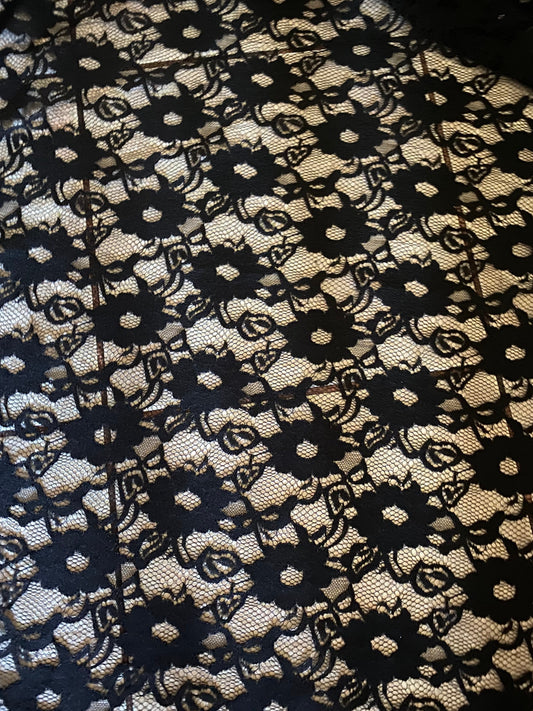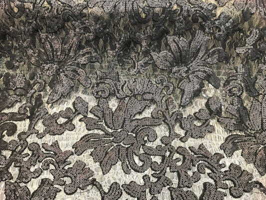 New lace with sequins beyonce design, nude base mesh with black matte design 54/55" Sold by the yd. ships worldwide from Los Angeles CA USA