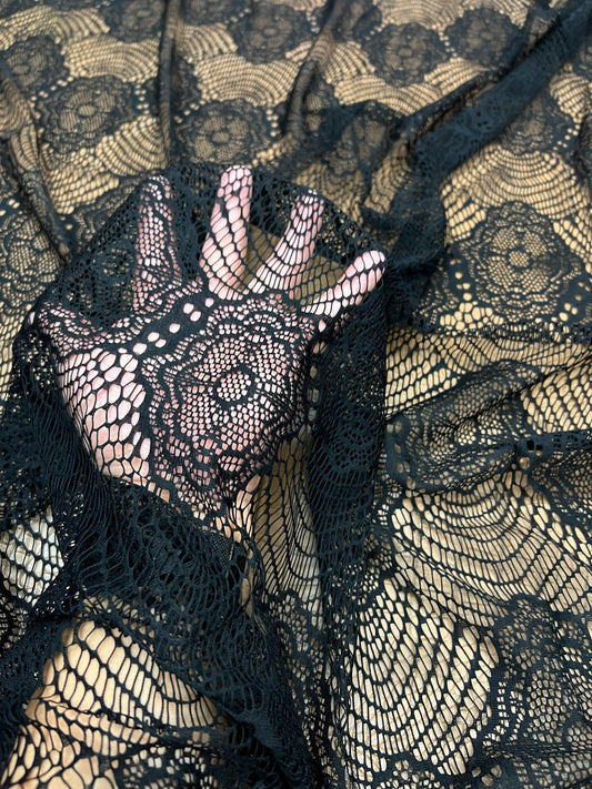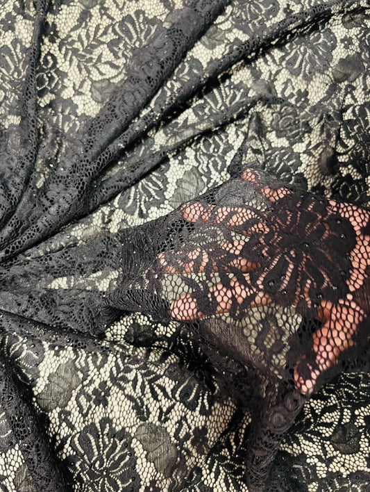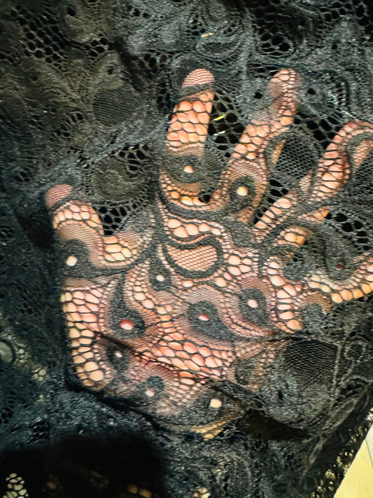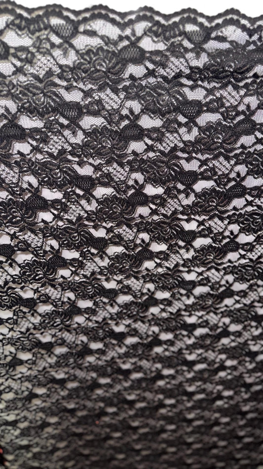 France black lace fine quality of stretch lace 2-way stretch 55/57” Sold by the YD. Ships Worldwide from Los Angeles California USA