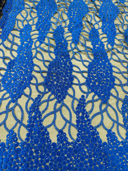 New Victoria stretch lace with rhinestone 4-way stretch 52/54” Sold by the YD. Ships Worldwide from Los Angeles California USA