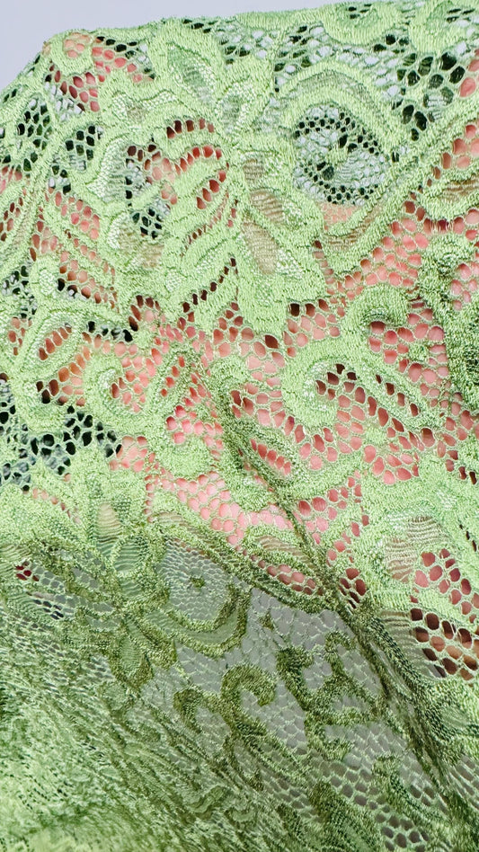 New Victoria Sage Stretch lace design best quality of stretch lace 55/57” Sold by the YD. Ships Worldwide from Los Ángeles California USA