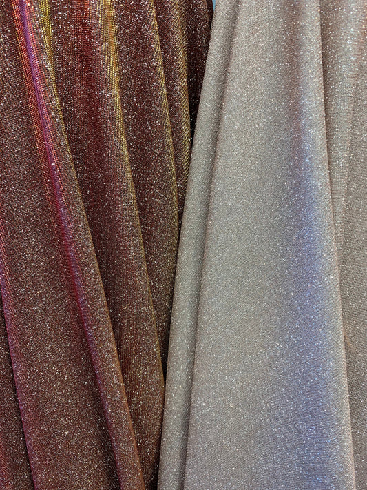 New lame metallic spandex with glitter 2-way stretch 58/60” Sold by the YD. Ships worldwide from Los Angeles California USA.