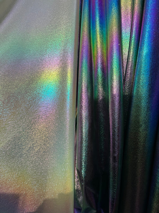 New Iridescent metallic poly lame fabric 2-way stretch 58/60” Sold by the YD. Ships worldwide from Los Angeles California USA.