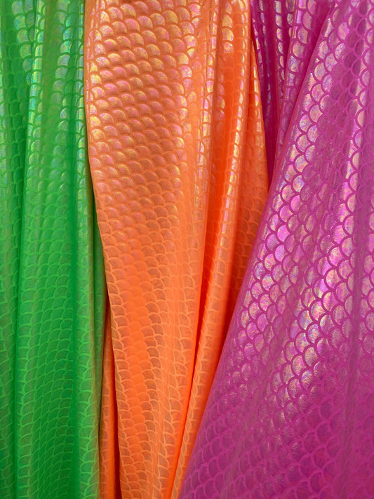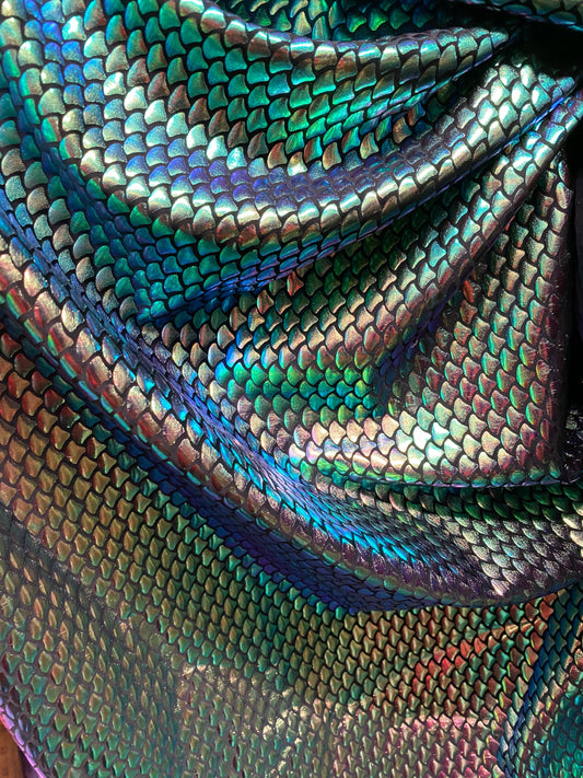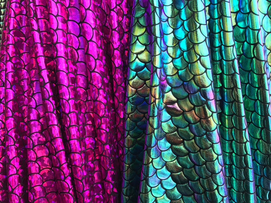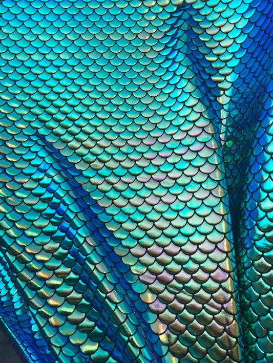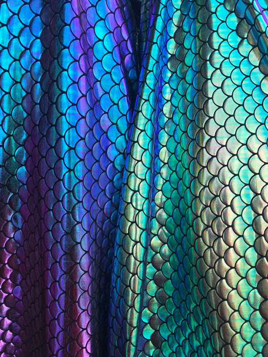 Iridescent mermaid foil fish scales nylon spandex 4way Stretch 58/60" Sold by the YD. Ships worldwide from Los Ángeles California USA