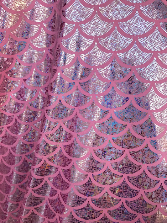 NEW Hologram pink jumbo size mermaid design on nylon spandex 4way Stretch 58/60" Sold by the YD. Ships worldwide from Los Angeles CA